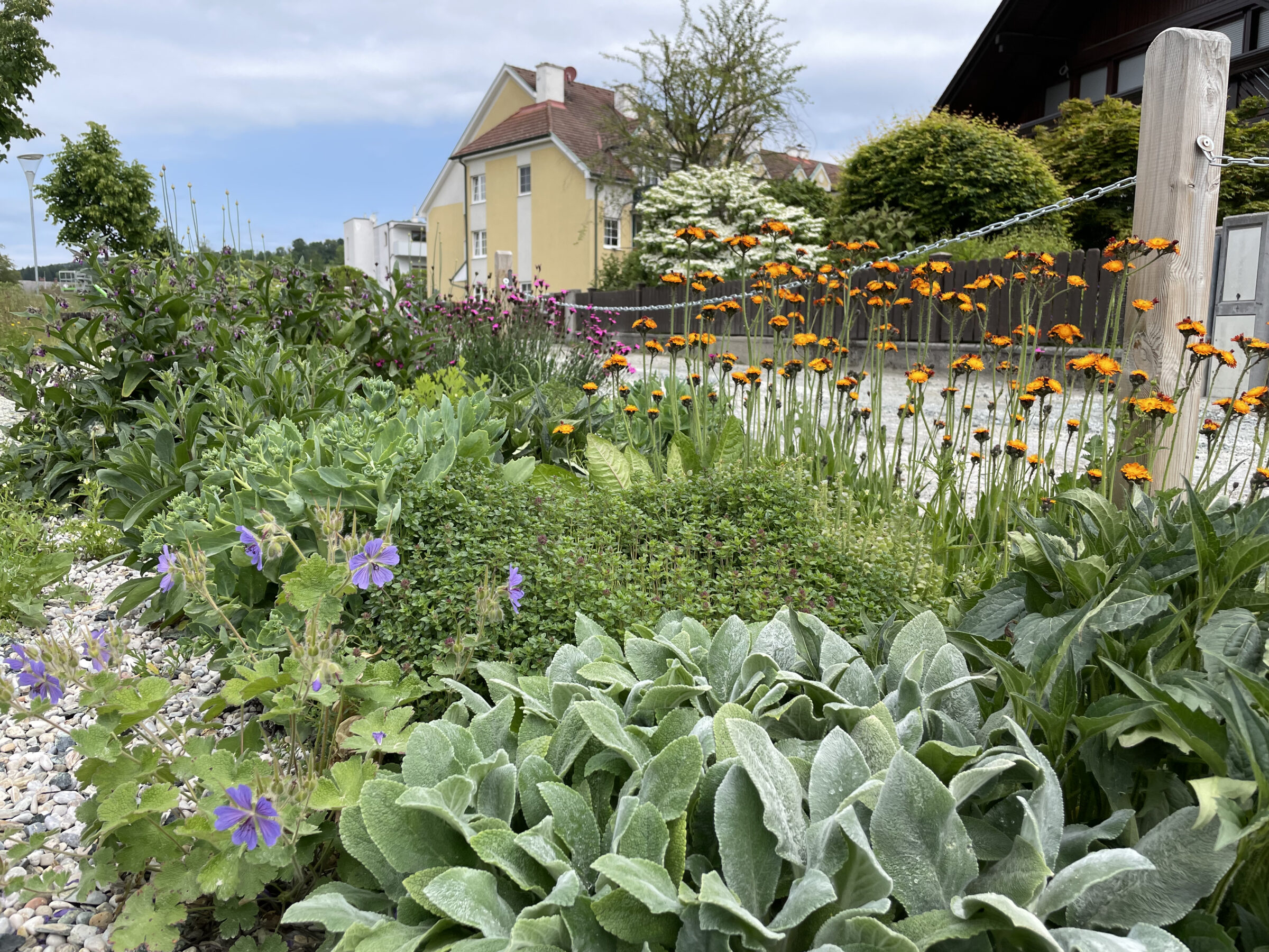 I have been a volunteer in the village renewal association of my home municipality of Krumbach (population 2,390) since 2021. My involvement began with the co-design of the promenade – a green connecting axis through the village. The aim was not only to create a link between important areas in the village, but also to provide a habitat for people and nature. The associated planting concept was my first contribution to the green and climate resilient enhancement of our public space.