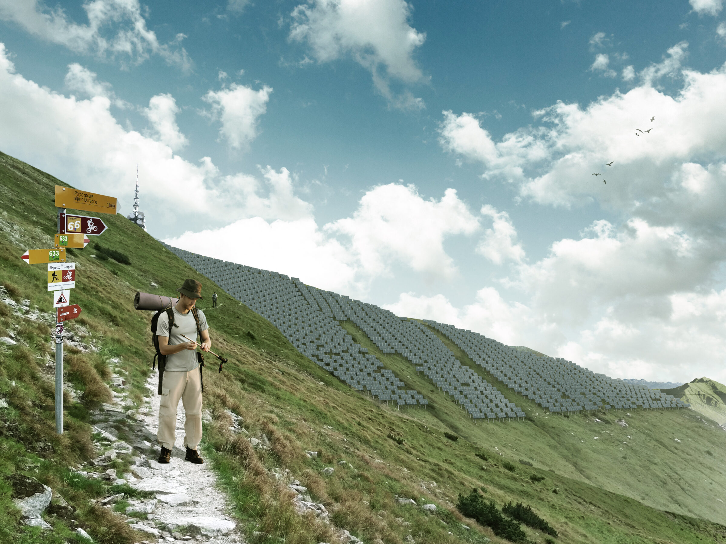 With 15,840 bifacial solar panels elevated to allow natural vegetation growth and wildlife passage, the park combines technical innovation with a landscape-sensitive design. Located in a naturally sheltered basin, the project maintains low visibility and avoids concrete foundations to ensure full reversibility and alignment with local conservation guidelines.