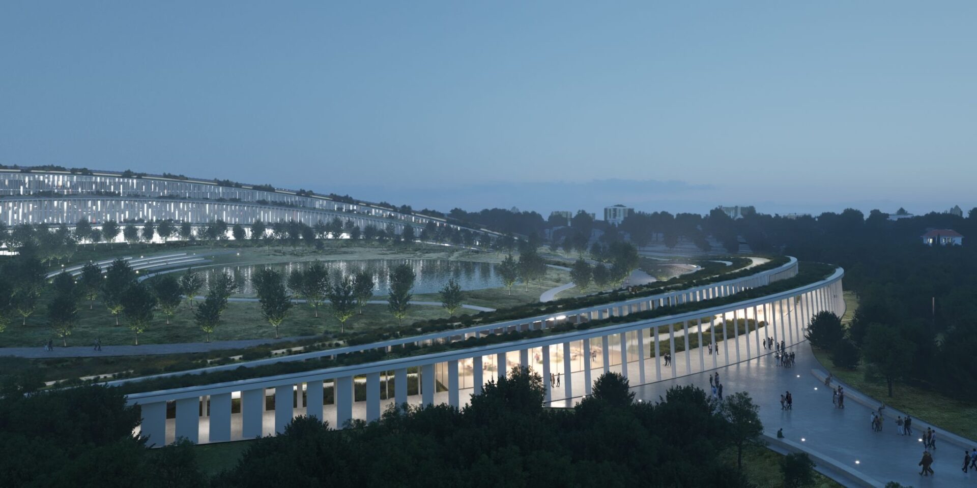 Mario Cucinella Architects was awarded first place with a futuristic architectural facility, to which LAND contributed with a landscape design under the banner of cutting-edge sustainability.