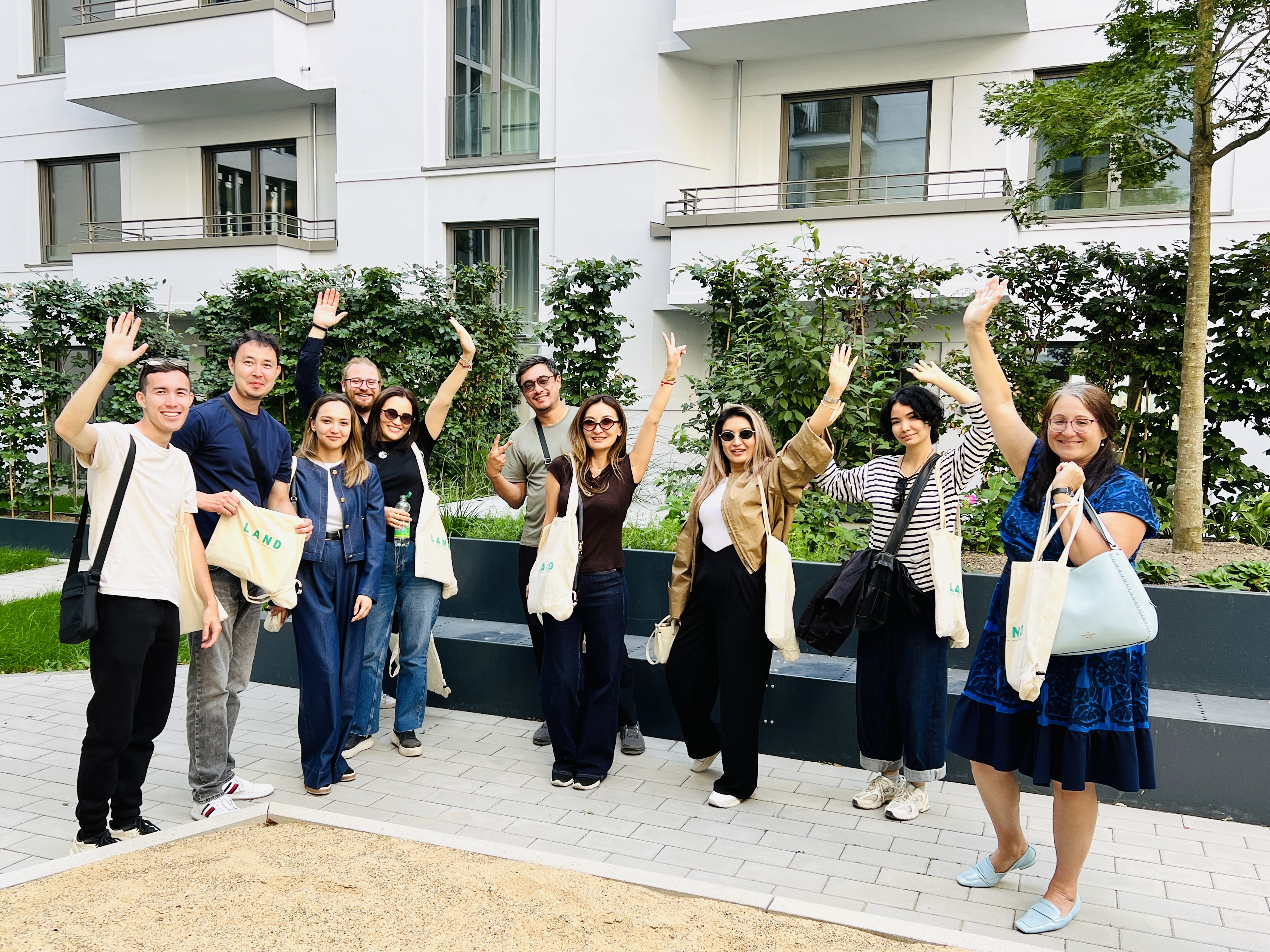 Guided by Susanne Gombert and Julian Altmann from our LAND Germany office in Düsseldorf, the group toured some of LAND’s key projects in the city, including the alltours Headquarters and the urban recreation of the “Grüne Haroldbucht” with the H5 ministry building of NRW.