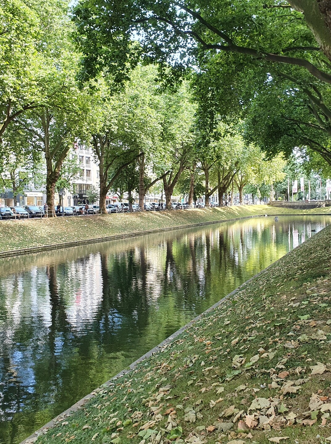 Going through the Kö-Bogen complex and down Königsallee, we walk along the Rhine promenade. By moving the once heavy above-ground traffic to an underground tunnel, an immediate connection to the river was restored, and this area became a popular destination for city residents and tourists.