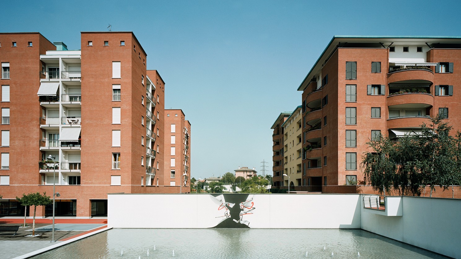 When I had the chance to work with Agostino Ferrari in Vimodrone, where we completed the Borgoverde Park in 2009, his proposal of a three-dimensional version of his painting “Oltre la soglia” (Beyond the Threshold) as murals was thrilling. It added a new dimension to our landscape idea. The water system, land design, and green structure form a unicum. This urban project takes shape in an environmental scheme, completely reversing the usual approach of first the urban project, then the green. Ferrari’s artwork, the evocative dark gap in the middle of the wall, suggests what might lie beyond it when we dare to break it up and open toward the new.