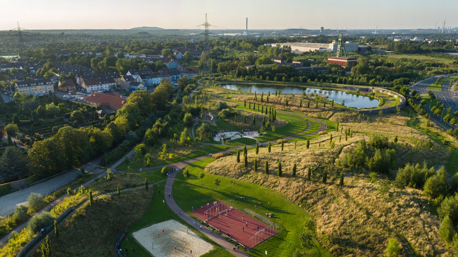 This conviction guided the design of Krupp Park in Essen, a historical project of LAND which I finally had the pleasure to see completed, attending the official inauguration of the southern park area with Thomas Kufen, mayor of Stadt Essen, Simone Raskob, Roxanne Ingmanns and Martin Buchacker. With a combined area of 12,5 hectares, the Park is exemplary for developing large green-blue infrastructures through the revitalisation of inner-city brownfield sites of the Ruhr metropolis. Since the inauguration of the northern part in 2009, Krupp Park has played a crucial role both in improving urban climate and biodiversity and in boosting community and sustainable local recreation. It is wonderful to witness the achievement of such a milestone, and I would like to express my sincere gratitude to everyone who has contributed to its realization over the years.