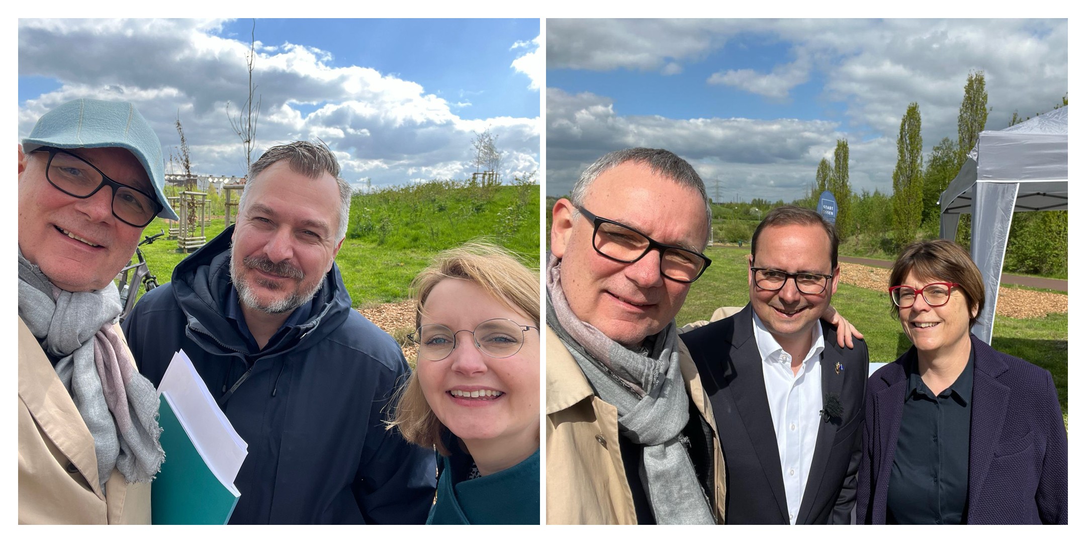 With Roxanne Ingmanns, director at LAND Germany, and Martin Buchacker, former director at LAND, designing the Krupp Park, and now head of green planning at Grün und Gruga (left). With Simone Raskob and Thomas Kufen, deputy mayor of Essen (right).