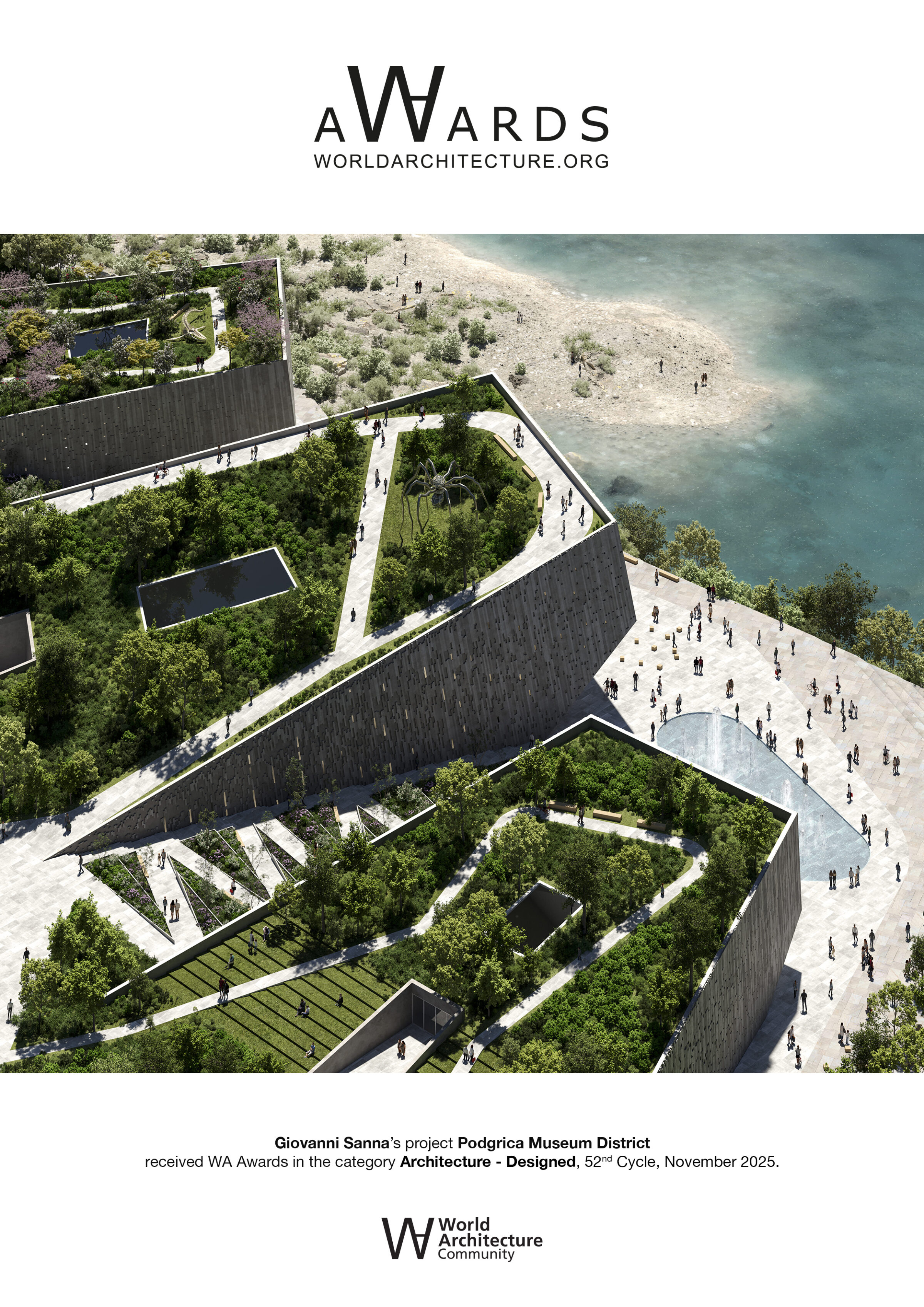 This achievement celebrates our joint work with a-fact architecture factory, Maffeis Engineering SpA and Charcoalblue. Our Park of Art and Culture develops from a holistic approach supporting a broader vision of architecture that contributes to the restoration and renewal of the Morača river landscape and aligns with current ecological priorities across the capital of Montenegro.
