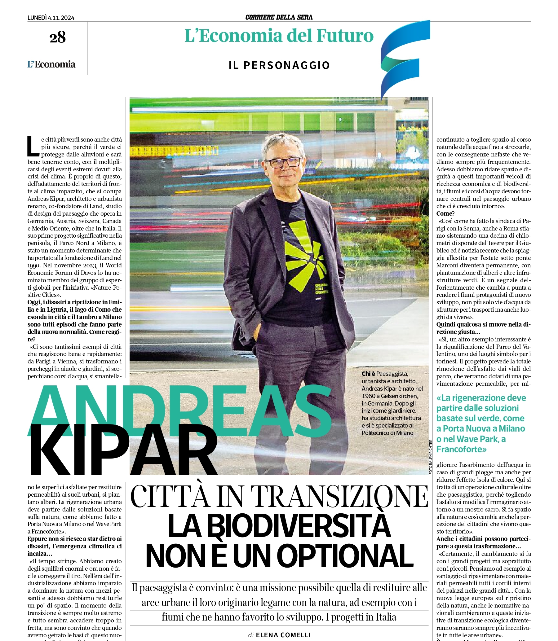 From climate resilience to cultural transformation: Andreas Kipar highlights in Corriere della Sera "L'Economia del Futuro" how cities can reconnect with nature to build healthier, more liveable urban environments.