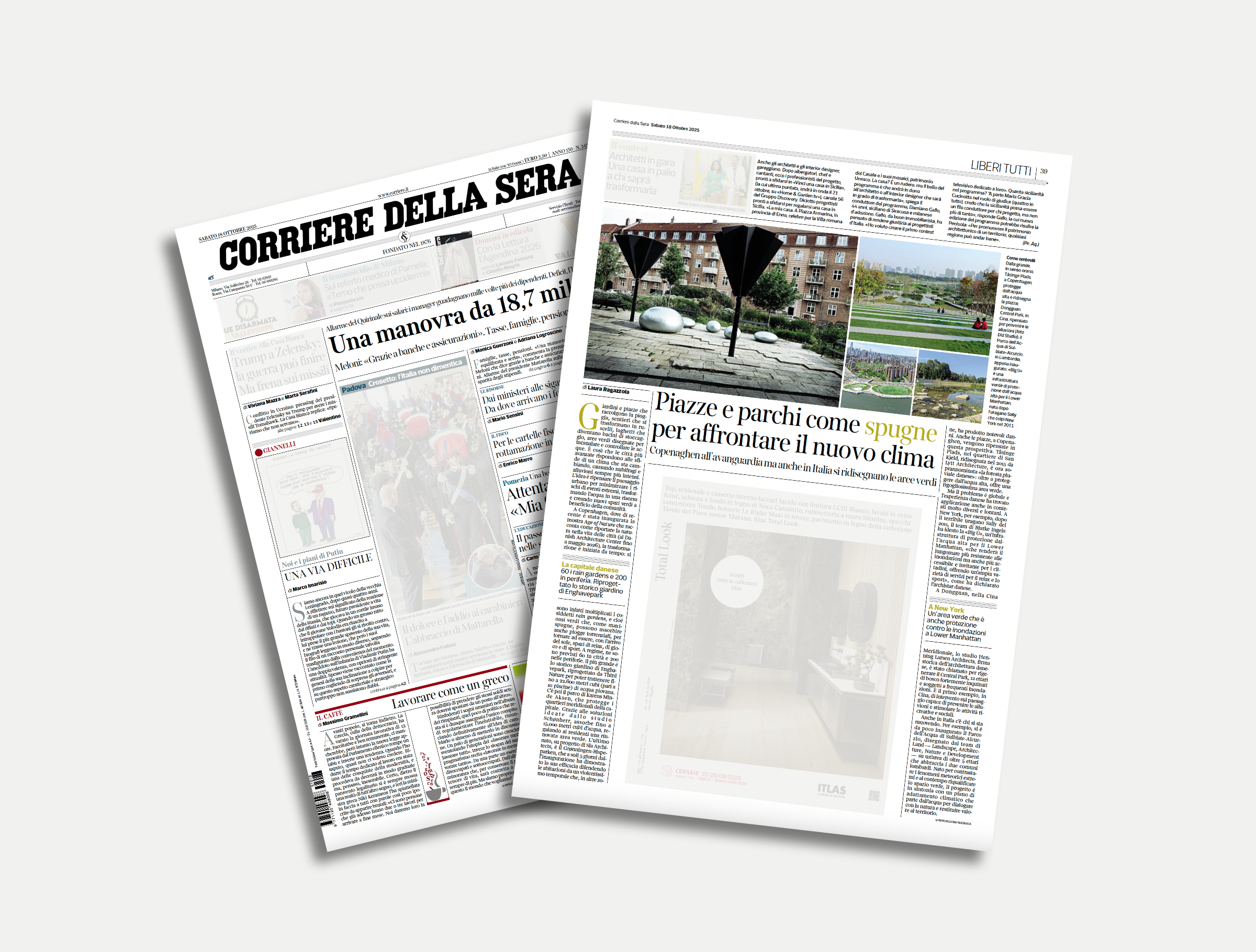 The “Liberi tutti” column of Corriere della Sera mentioned our Parco dell’Acqua in Sulbiate-Aicurzio, designed for BrianzAcque, as a virtuous example of a “sponge park,” comparing it to international examples in Copenhagen, New York, and China.