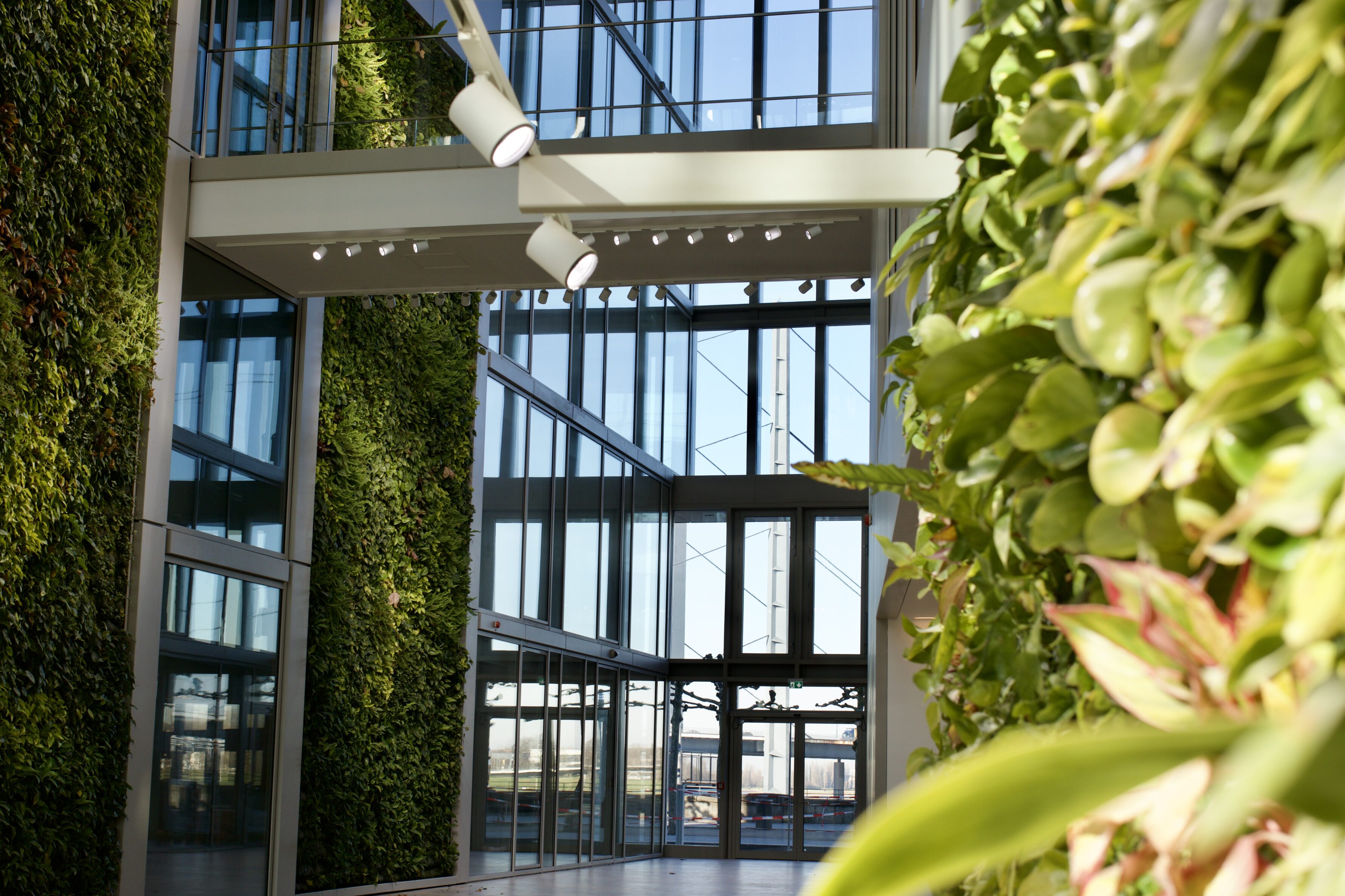 Year-round planting is distributed across two distinct zones, creating visual depth and reinforcing the concept of a “Green Frame” that envelops the site. Existing shrubs are preserved, contributing to biodiversity and continuity with the surrounding landscape. The structured green spaces are thoughtfully arranged around the pathway leading to the main entrance, offering an intuitive and pleasant experience for employees and visitors alike.