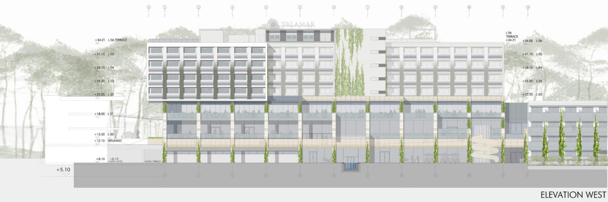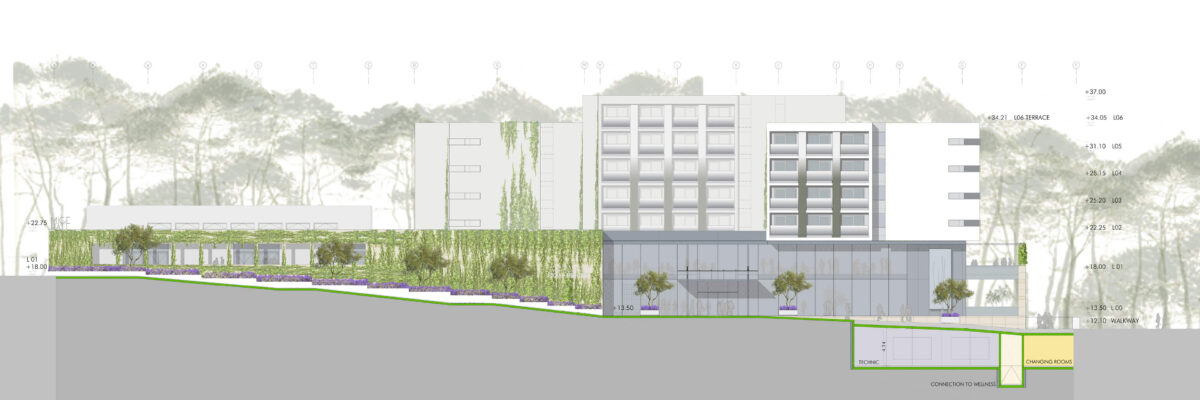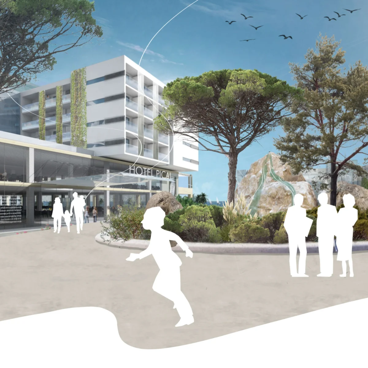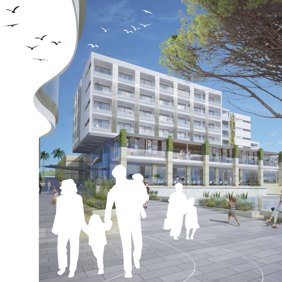 LAND was commissioned to revise the concept to ensure that the beach resort is aesthetically pleasing and meets the latest ecological principles. The aim is to identify the homogeneous landscape areas and define strategic guidelines for their enhancement, focusing on integrating green areas and implementing nature-based solutions to preserve the natural environment and provide sustainable solutions to ecological challenges. We proposed radical and vertical green, to make the most out of the available space.