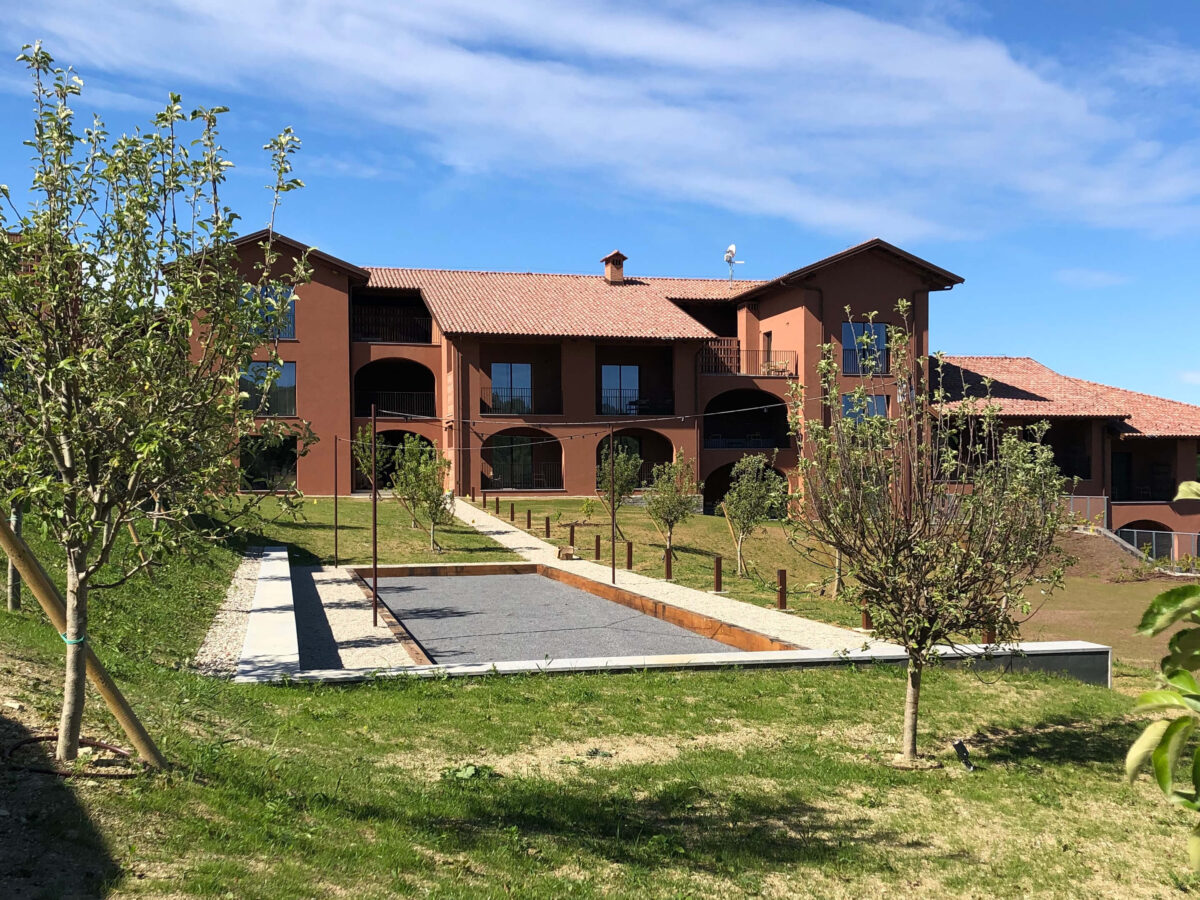 78 Langa’s native hazelnut trees, 1 ancient fruit orchard with 72 ancient fruit trees belonging to 23 different rare native varieties, 260 sqm of central court green areas with a mix of 26 different types of herbaceous plants, 1 petanque pit, 1 fire pit area, 1 swimming pool, 1500 sqm of green roof, 150 sqm of aromatic garden, 90 lm of green walls