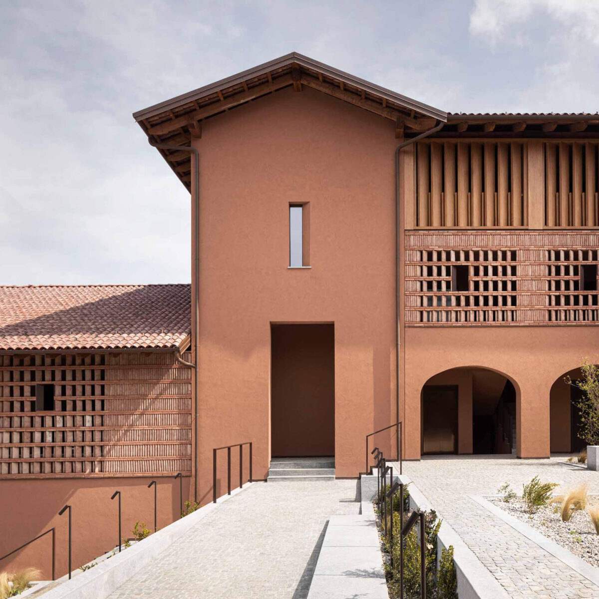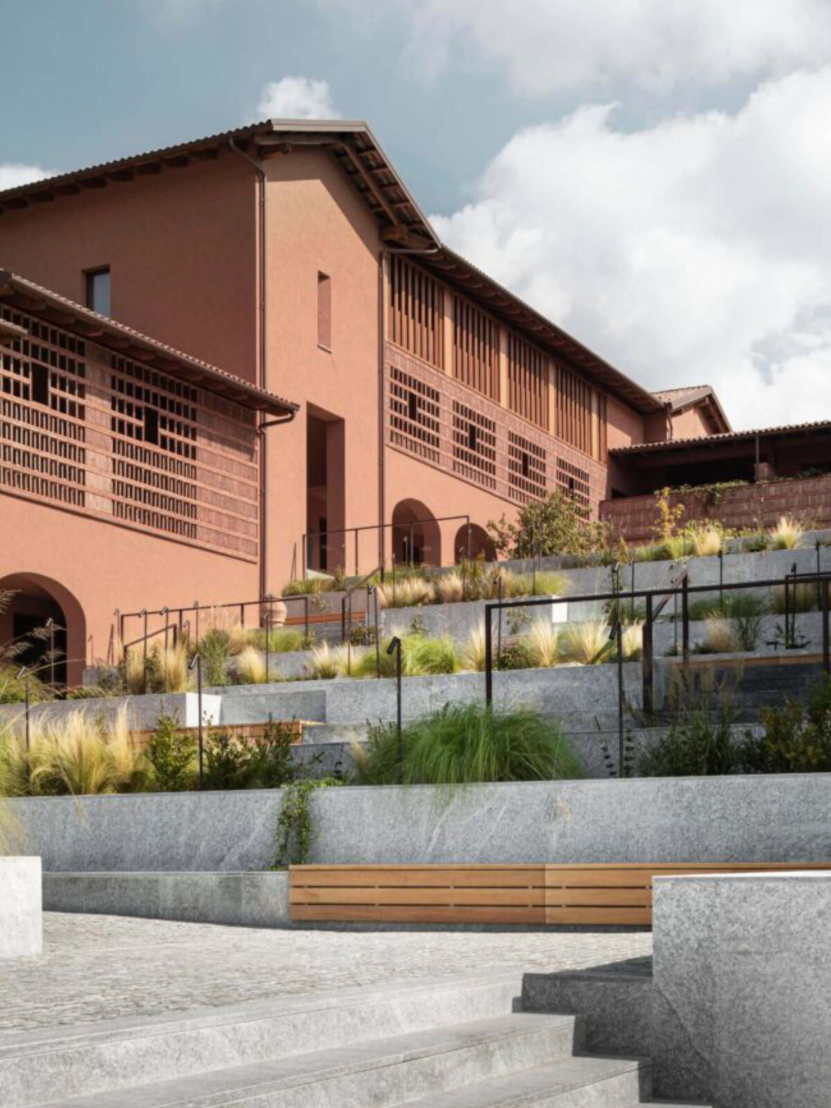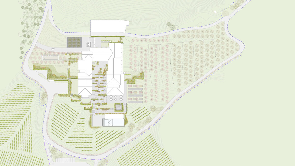 Our commitment to the local environment is reflected in every detail of our landscape design. From the natural gradient that extends outward from the central building to the agricultural zones, to the choice of indigenous plant species, materials, and colors, we strive for authenticity and continuity, ensuring a harmonious blend with the Langa landscape. We focussed on the physical and visual connection with the surroundings; the usability of all outdoor spaces, even in a context with a complex morphology and the reworking of a local language through new compositional forms.