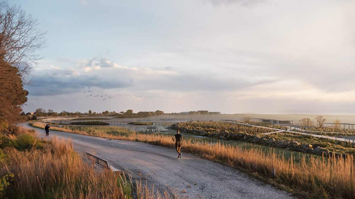 In this hydroconnected zone, the living structure re-establishes the lost link with the shoreline and creates a promenade that serves as a dike, a filter repairing nature, ensuring resilience and future adaptation to climate change. Freshwater from the Great Lakes and other tributaries, including the two rivers that flank the site, is subject to tides that raise the water level by up to six metres. These fluctuations give rise to a dynamic coastline that previously supported a rich ecology of tidal flats and recreational areas.