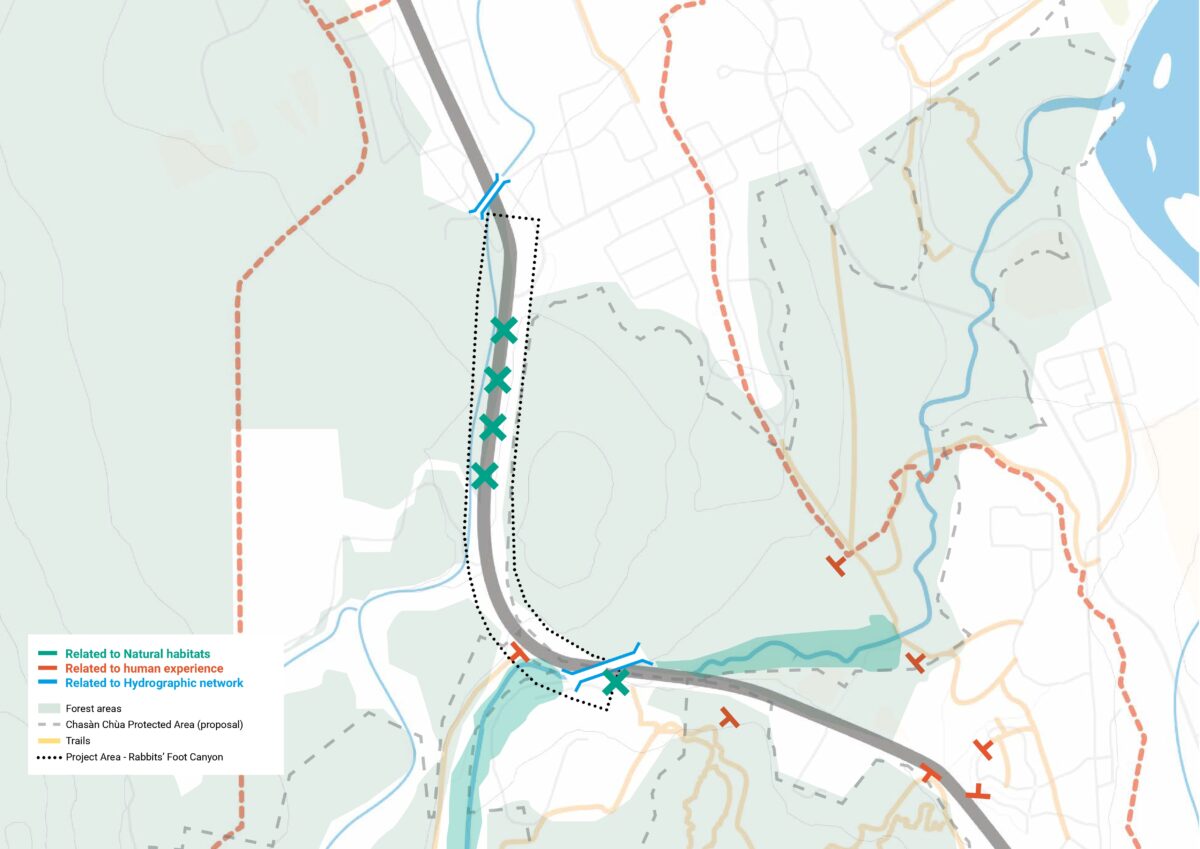 The strategy advocates reconnecting fragmented trails and adapting existing infrastructure to support slow mobility and non-motorized users. Low-impact landmarks and signage will improve orientation and safety. It aslo includes the creation of highway crossings specifically designed to be low-impact and compatible with the surrounding environment, reducing interference with road traffic.