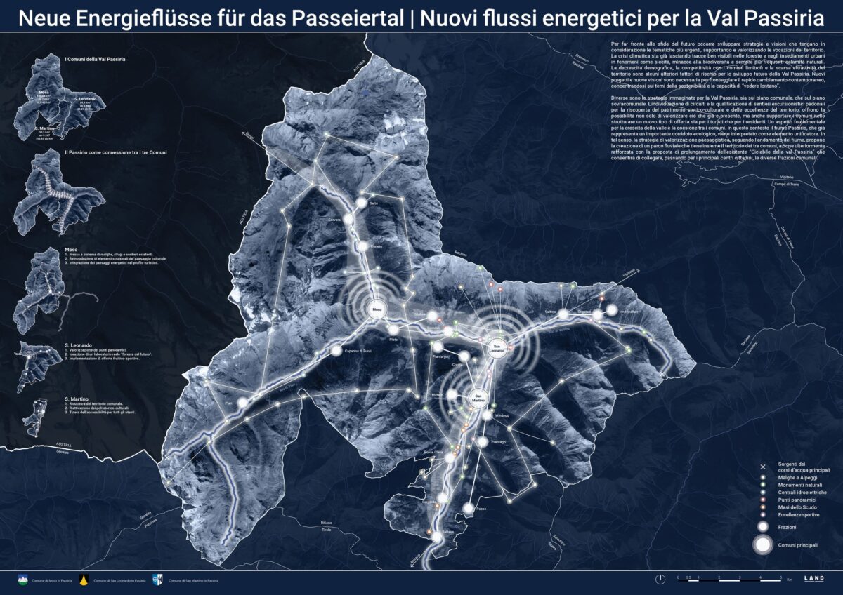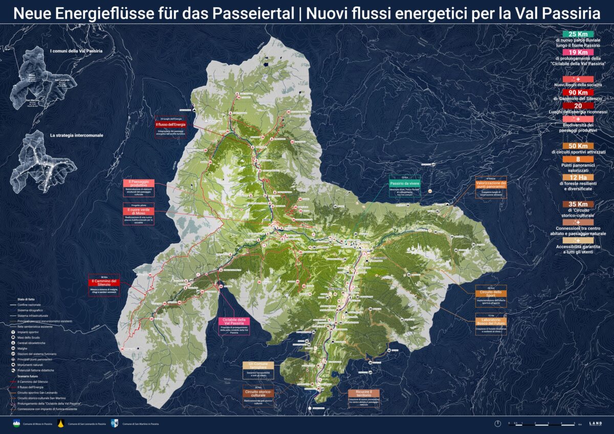The Municipalities of Moso, St. Leonardo and St. Martino in Passeier jointly developed a Preliminary Strategic Masterplan in line with the provincial law no. 9/2018 “Territory and Landscape.” Conceived as a preparatory planning tool, the project identifies the criticalities and potentials of the territory while providing strategic development guidelines.