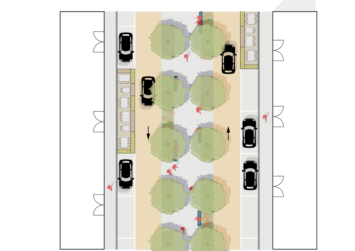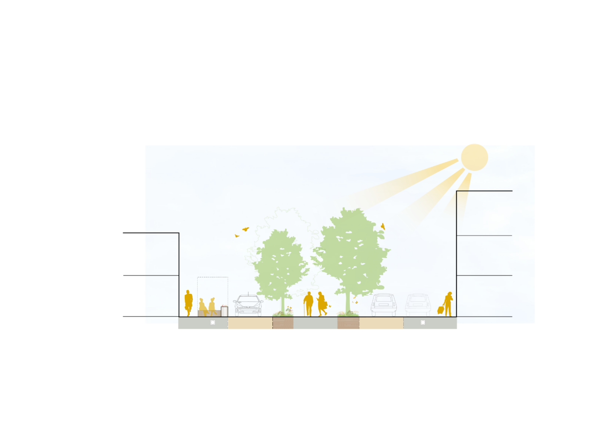 Introducing urban greenery and shaded areas transforms Via Mensa into a welcoming, attractive space for residents and tourists. The greenery serves an aesthetic purpose and addresses environmental well-being, creating a cooler, more comfortable public realm.