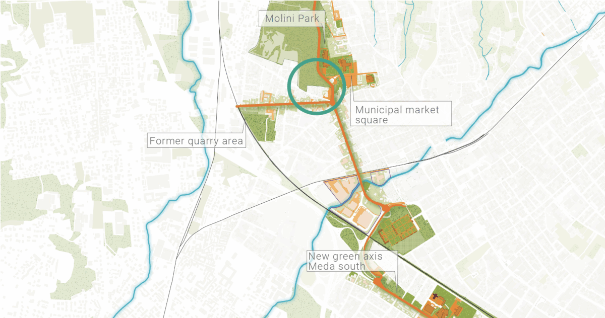 The project is part of the broader Meda Laboratory NbS 2025 Masterplan, developed by LAND between 2022 and 2023. From a design perspective, the project proposes an advanced concept of green-blue infrastructure, in which nature-based solutions are interwoven with a holistic landscape vision oriented toward inclusion, social interaction, and environmental education. This approach integrates nature and its regenerative function within the urban environment, recognizing it as an essential factor contributing to quality of life.